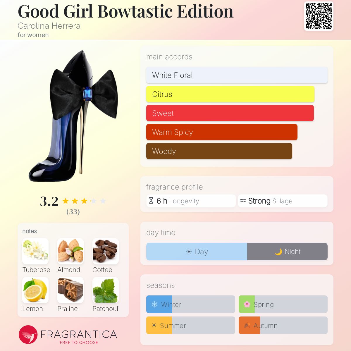 Phiên bản đặc biệt với thiết kế nơ midnight-blue sang chảnh, mùi hương vẫn giữ DNA addictive của Good Girl nhưng tươi sáng và cuốn hút hơn bao giờ hết.